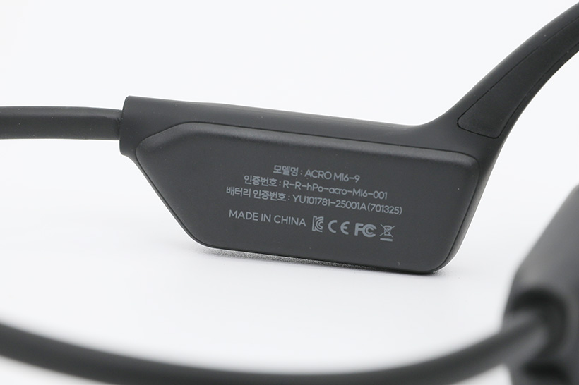 ACRO 프리런 골전도 무선이어폰 MI6-9 오른쪽 후크의 뒤에 있는 모듈에는 바깥쪽에 작은 구멍이 하나 있는데, 상태 표시등과 마이크가 내장되어 있는 부분이다.