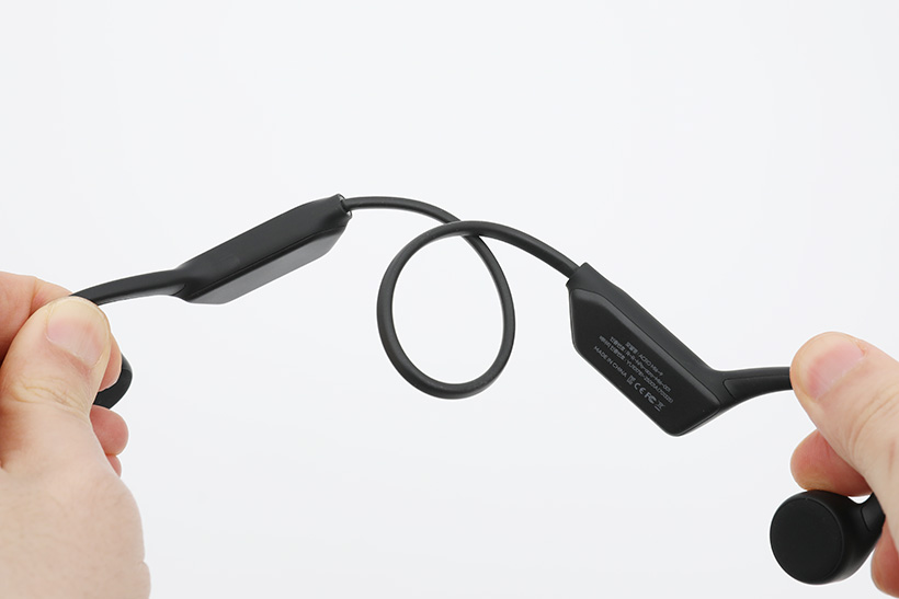 기본적인 외형은 일반적인 골전도 무선 이어폰과 크게 다르지 않다. 귓바퀴 바깥에 걸치는 두 개의 후크 형태가 와이어로 연결되어 있으며, 색상은 블랙 단일 컬러이다.