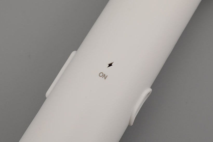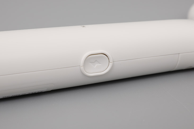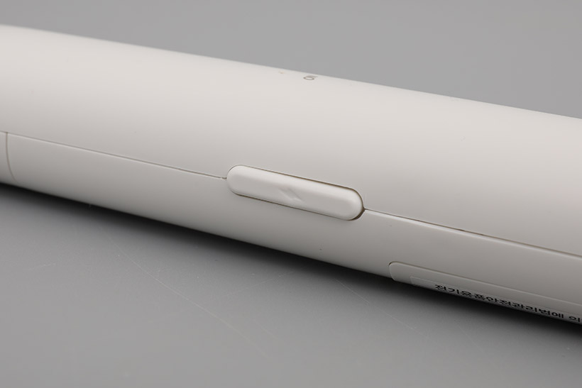 LED 인디케이터 왼쪽 측면에는 번개 모양으로 음각이 되어 있는 길쭉한 타원형의 버튼이 돌출되어 있다. 버튼에 새겨진 모양을 보면 전원 버튼임을 짐작할 수 있다.