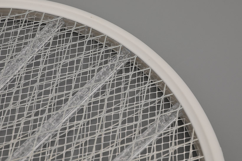 헤드 부분을 자세히 보면 철망이 3단으로 되어 있는데, 가운데 있는 전기망 앞뒤로 보호망을 추가한 3중망 설계로 전기망에 손이 직접 닿지 않아 감전 위험을 줄여주고 있다.