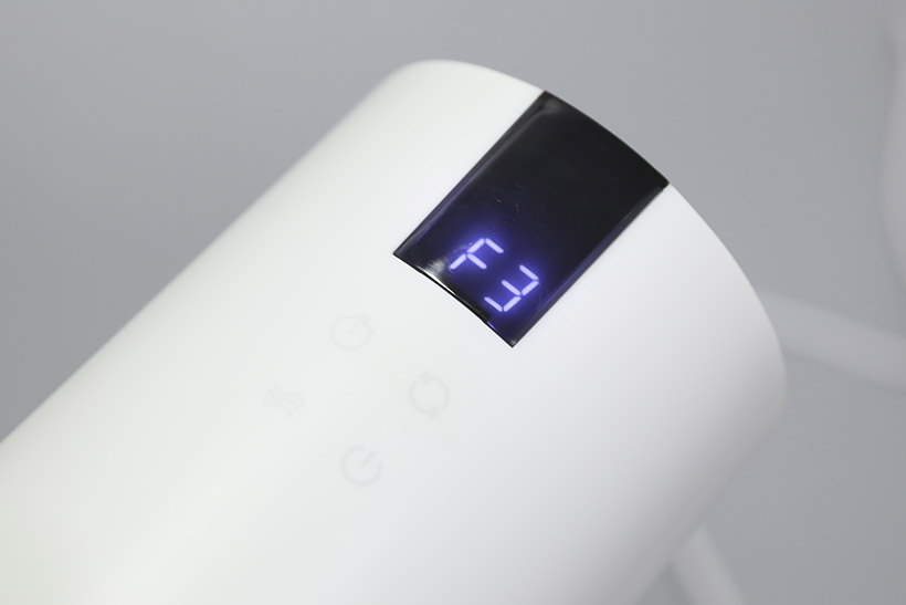 좌우 회전 버튼을 누르면 디스플레이에는 별다른 표시 없이 회전 기능이 작동된다. 타이머의 경우 버튼을 누를 때마다 1시간 단위로 설정되며, 최대 12시간까지 설정할 수 있다.
