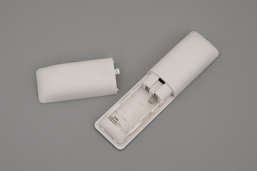 기본 제공되는 리모컨에는 본체 윗부분에 있는 네 개의 버튼이 동일하게 포함되어 있으며, AAA 배터리 2개로 작동된다.