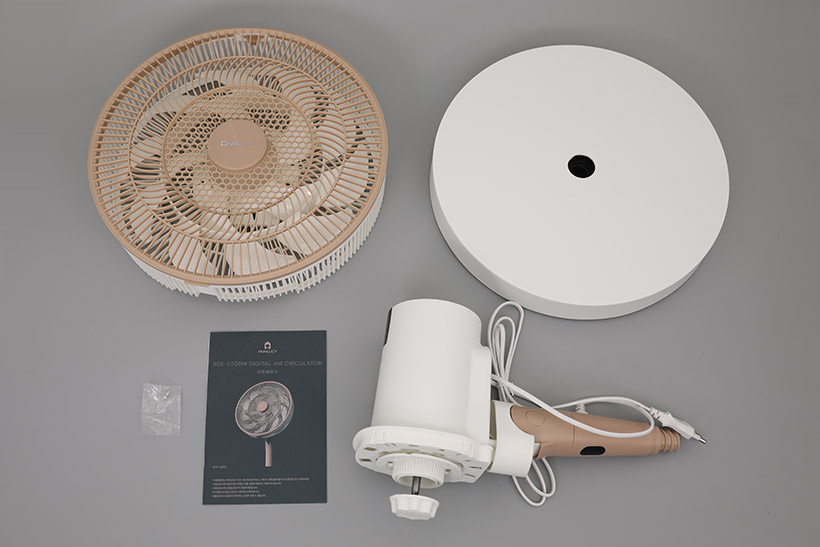 박스 안에는 앞망과 뒷망 사이에 날개가 들어간 상태로 합쳐져 있고, 받침대와 본체, 사용 설명서, 그리고 나사 하나가 함께 제공된다.