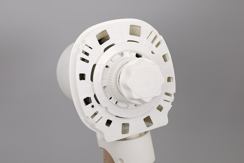 뒷망 고정이 완료된 후에는 회전축에 날개를 끝까지 밀어 넣은 후 날개 고정 나사를 돌리고 고정해준다. 뒷망 고정 나사와 날개 고정 나사는 잠그는 방향이 반대인데, 각 고정 나사 앞면에 잠그거나 푸는 방향이 표시되어 있다.