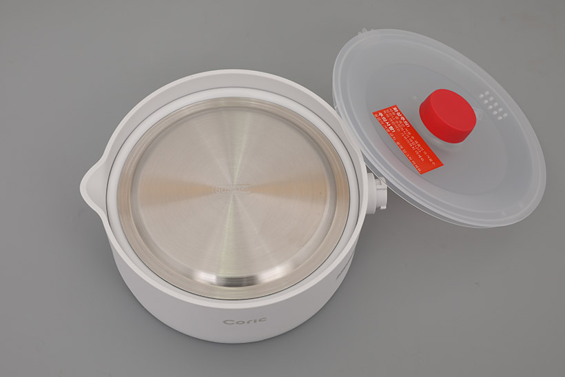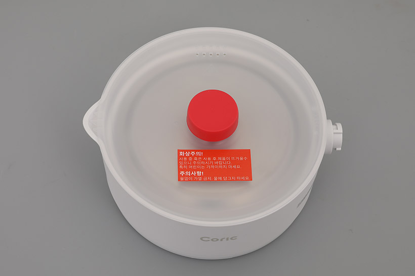 본체 위에는 반투명한 뚜껑이 씌워져 있는데, 식품 등급의 PP 소재를 채택해서 가열 조리를 할 때에도 걱정 없이 사용할 수 있다.