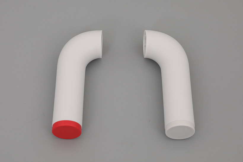 구성품 중에 손잡이 두 개가 함께 제공되는데, 끝부분 색상만 다르고 용도는 동일하다. 둘 중 하나를 선택해서 본체 오른편 손잡이 장착부에 눕힌 상태로 끼워 넣은 후 반시계 방향으로 90도 회전시키면 고정된다. 주전자 형태의 손잡이기 때문에 물을 부을 때도 편리하며, 조리 후 통째로 들고 이동할 때도 안정적이다.