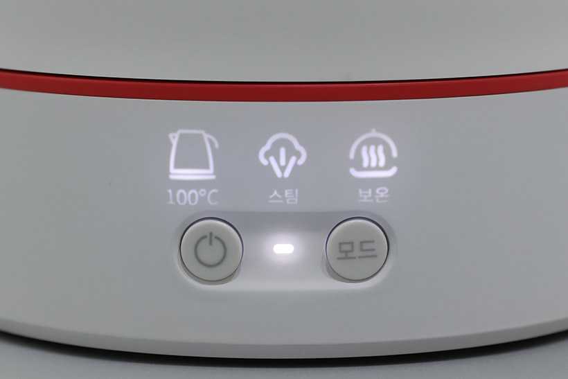전원 연결 후 전원 버튼을 길게 누르면 버튼 위쪽에 세 가지 모드 이미지 인디케이터가 켜진다. 100℃로 표시되어 있는 가열 모드는 100℃에 도달해서 3분간 유지된 후 작동이 종료되며, 스팀 모드는 100℃에서 10분간 가열 후 자동 종료된다. 보온 모드의 경우 45℃로 유지되면서 최대 12시간 동안 보온 상태가 된다.