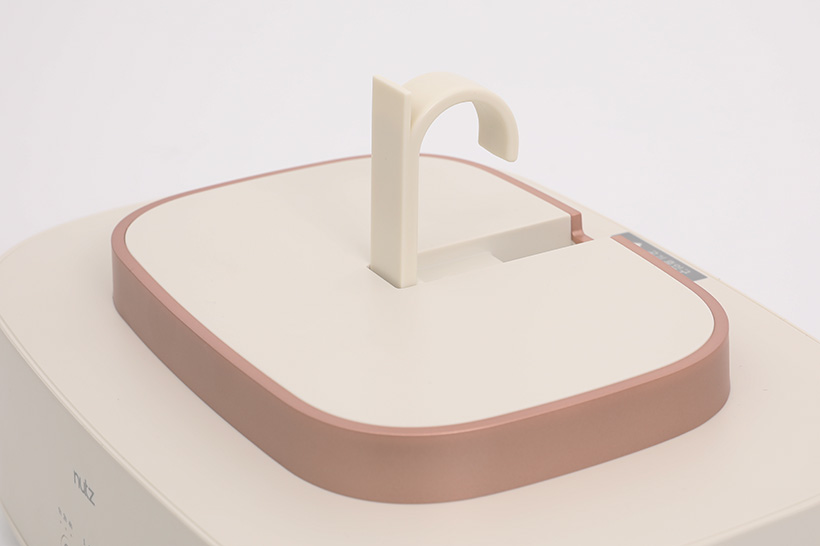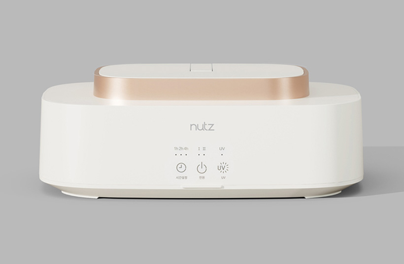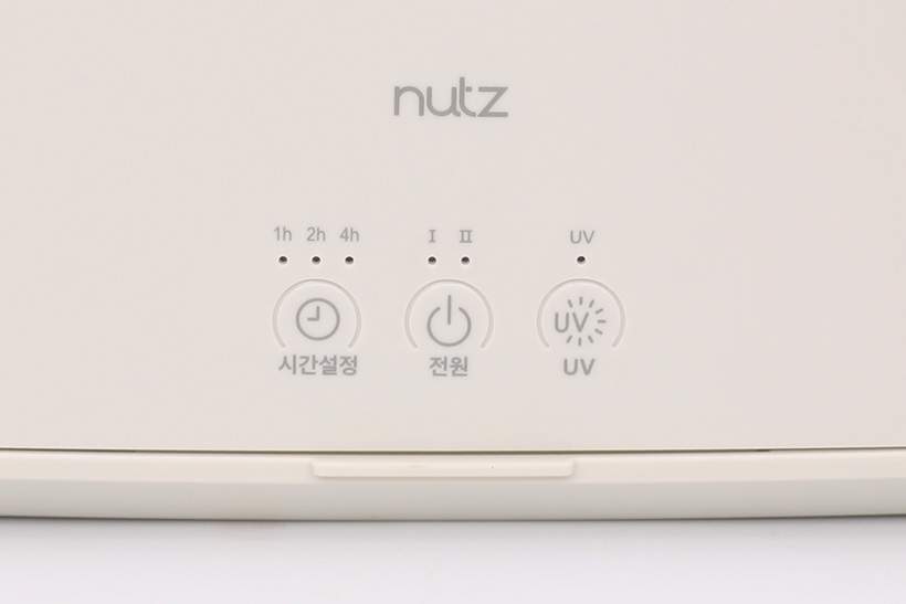 본체의 앞면에는 버튼과 LED가 가지런하게 모여있다. 버튼은 총 세 개로, 시간 설정 버튼과 전원 버튼, 그리고 UV 버튼으로 이루어져 있다. 각 버튼의 위에는 설정 상태를 표시해주는 LED가 위치해 있다.