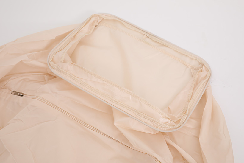 너츠 의류 건조기 HD-03A 본체에 슈트 커버를 장착하고 거치대에 걸면 다음과 같은 모습이 된다. 슈트 커버 설치 시 내부 공간은 약 100L이며, 길이가 1m 가량이어서 긴 옷도 수납할 수 있다. 또한 최대 하중이 10kg이기 때문에 여러 벌의 옷을 동시에 걸고 사용할 수 있다.