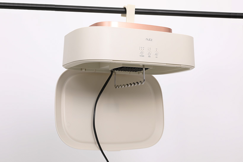 너츠 의류 건조기 HD-03A를 실제로 사용할 때에는 옷장의 봉이나 거치대에 걸어서 사용해야 한다. 이 때 본체 윗면에 접혀있는 손잡이 걸이를 세워서 걸면 된다.