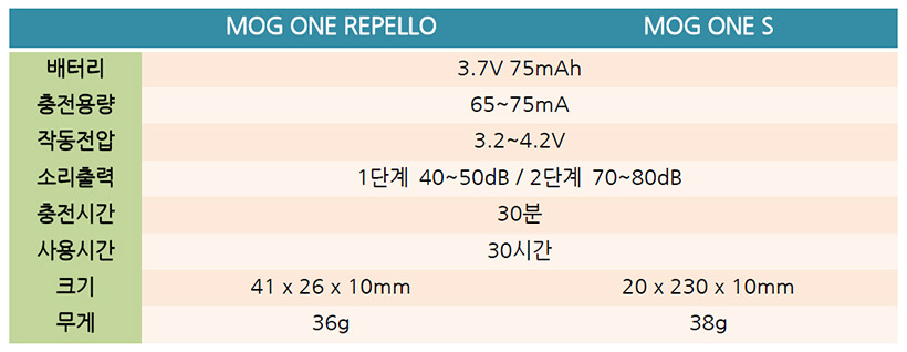모그원 레펠로 TR-100과 모그원 S TR-300은 전 세계 2천여 종에 가까운 다양한 모기의 비행 소리를 재생해 암모기의 접근을 막는데, 평균적으로 약 70%의 억제 효과를 제공한다. 또한 두 제품 모두 화학 성분이나 연기를 사용하지 않아 어린아이나 반려동물이 있는 가정 또는 민감한 피부를 가진 사용자도 안심할 수 있는 대안이 된다. 그뿐만 아니라 휴대가 간편하고 30분의 짧은 충전으로 30시간의 긴 시간을 사용할 수 있기 때문에 특히 캠핑 등 야외 활동을 많이 하는 사용자라면 상당히 유용할 것으로 예상된다.