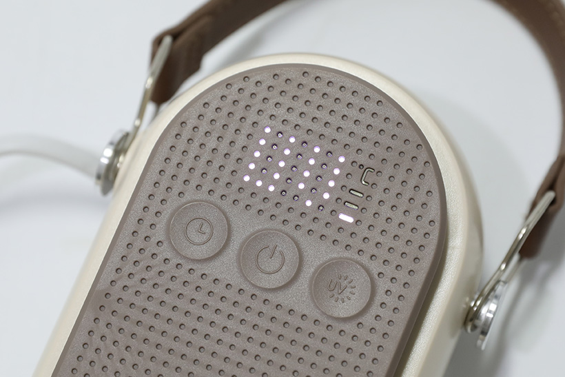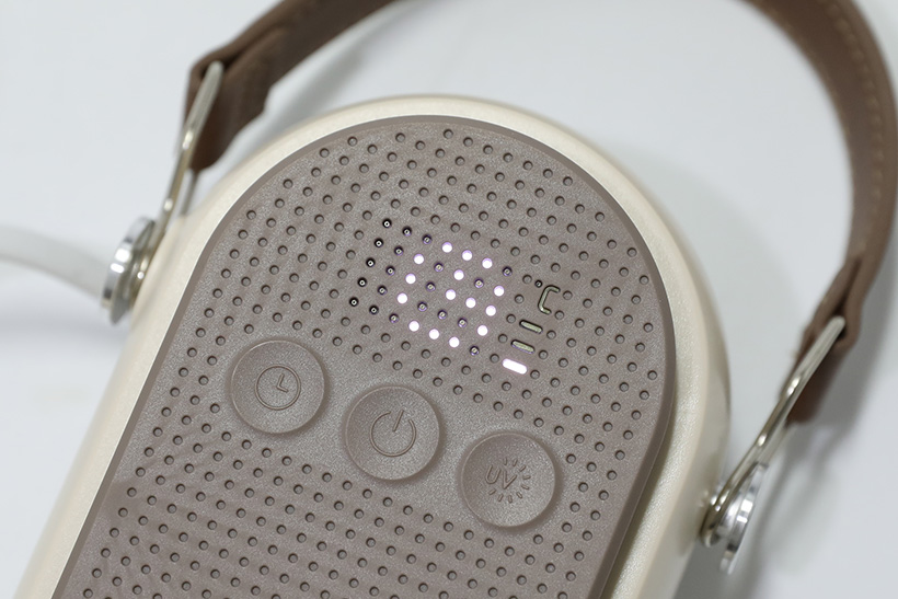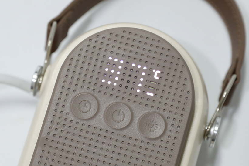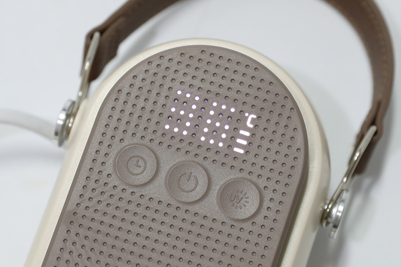 좀 더 진한 얼굴 부분을 자세히 보면 LED 표시창과 세 개의 버튼이 모여 있는 컨트롤 패널이 있다. 버튼은 가운데가 전원 버튼이며, 오른쪽은 UV 램프 버튼, 왼쪽은 타이머 버튼이다.