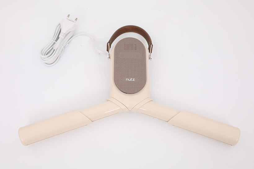 너츠 휴대용 신발 의류 건조기 HD-02A는 유선 연결 방식을 사용한다. 옷걸이 등에 걸어둔 상태로 써야 하기 때문에 전선이 짧으면 불편할 수 있는데, 약 2.8m의 여유로운 길이로 제공되고 있다.