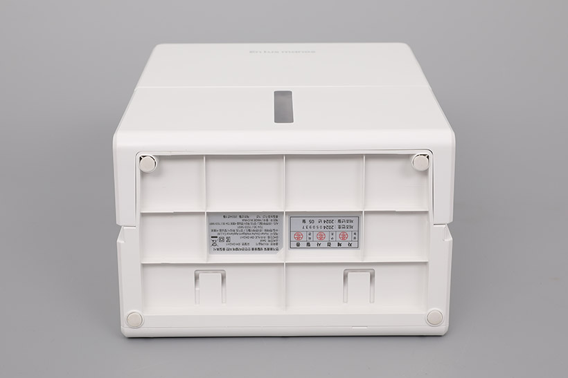 기본적인 본체 외형은 백색 단일 컬러로 된 박스 타입으로, 굉장히 심플한 디자인의 전면 아래쪽에 작은 창이 있어서 물탱크에 찬 물의 양을 확인할 수 있다.