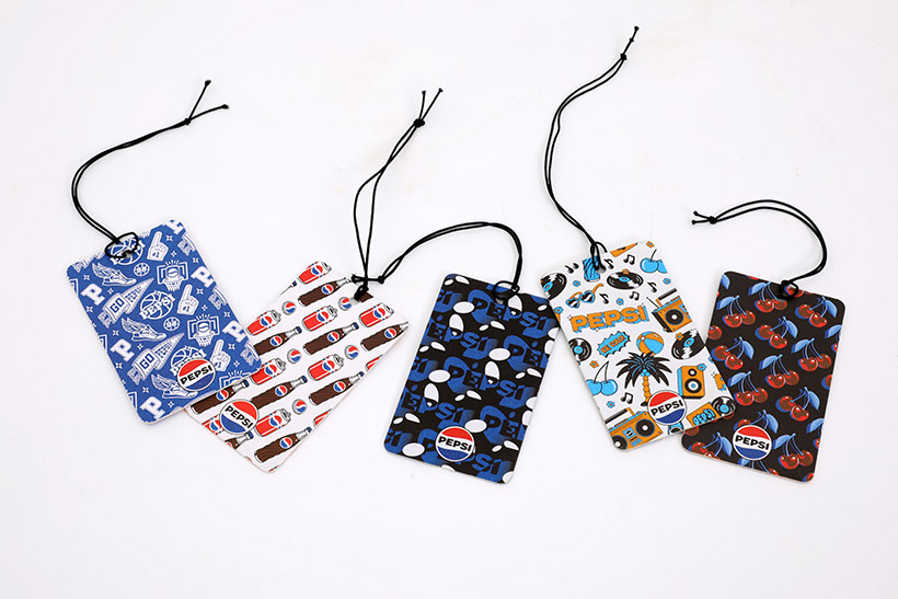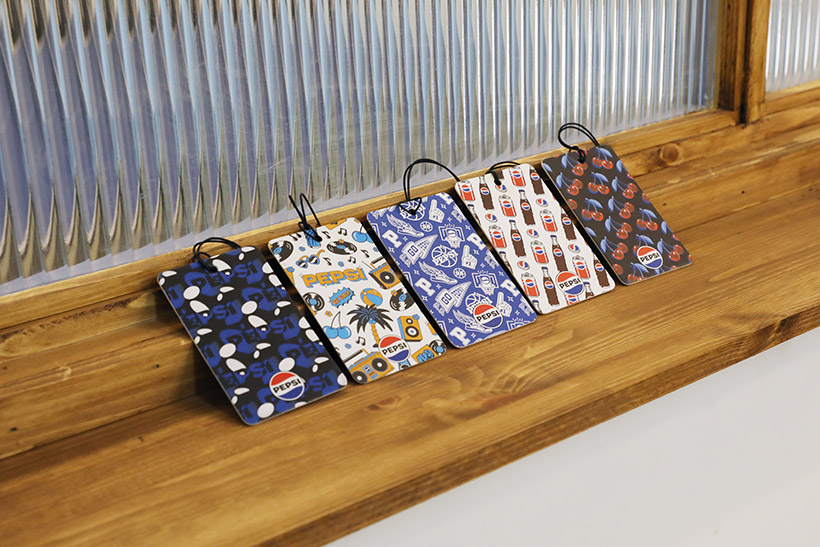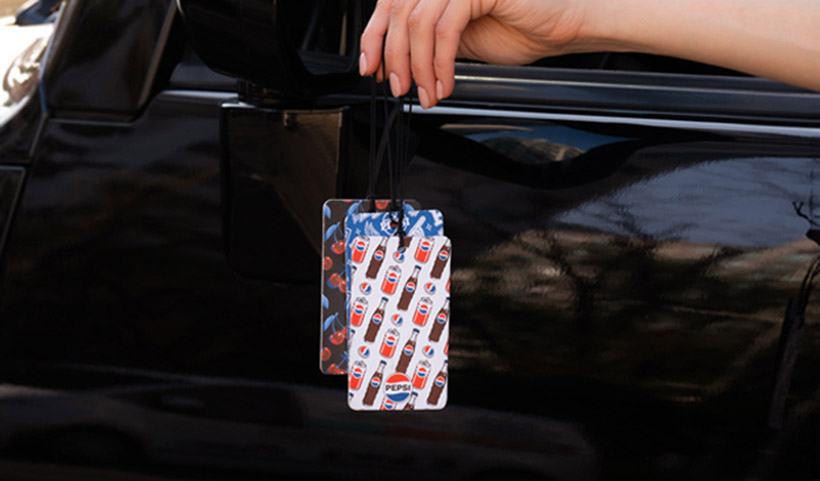 펩시 종이 방향제는 약 6 × 10㎝의 직사각형 종이로, 디자인부터 단연 눈길을 사로잡는다. 팝아트 스타일의 시각 요소들이 펩시 로고와 조화를 이루며, 보는 순간 펩시 특유의 톡 쏘는 개성과 젊은 에너지를 전달한다.