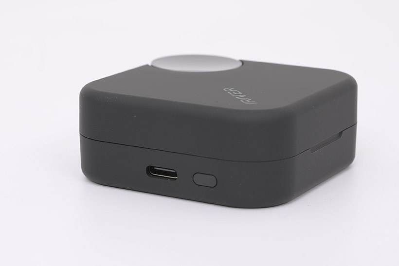충전 케이스의 측면에는 충전용 USB C타입 포트가 있고, 포트 바로 옆에 자그마한 버튼이 하나 보인다. 이 버튼은 배터리 잔량을 확인할 때 사용되며, 기기를 초기화하는 기능도 갖추고 있다.