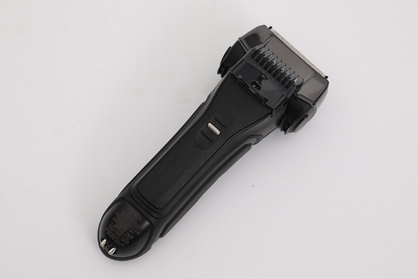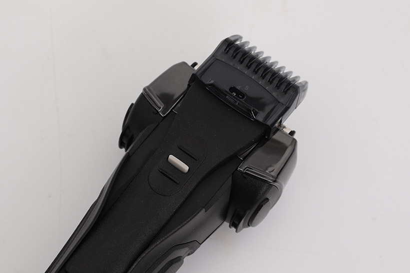 이즈미 전기 면도기 전동 익스트림 쉐이버 IKS-6200 뒷면의 회색 트리밍 버튼을 누르면서 위로 밀어 올리면 트리머가 노출된다.