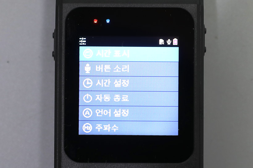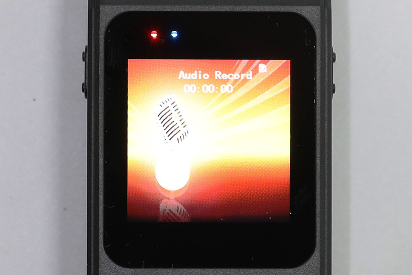 대기 모드에서 왼쪽 측면의 녹음 스위치를 위쪽으로 올리면 음성 녹음이 시작되며, 화면에 Audio Record라는 문구와 함께 마이크 이미지나 나타나 녹음 상태를 쉽게 확인할 수 있다.