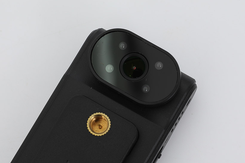 뒷면의 클립 바로 위에는 카메라 렌즈가 보인다. 렌즈는 170°의 광각으로, 한 화면에 넓은 영역을 담을 수 있다. 렌즈의 양옆에는 네 개의 적외선 램프가 내장되어 있어서 야간이나 어두운 환경에서도 선명한 촬영이 가능하다.