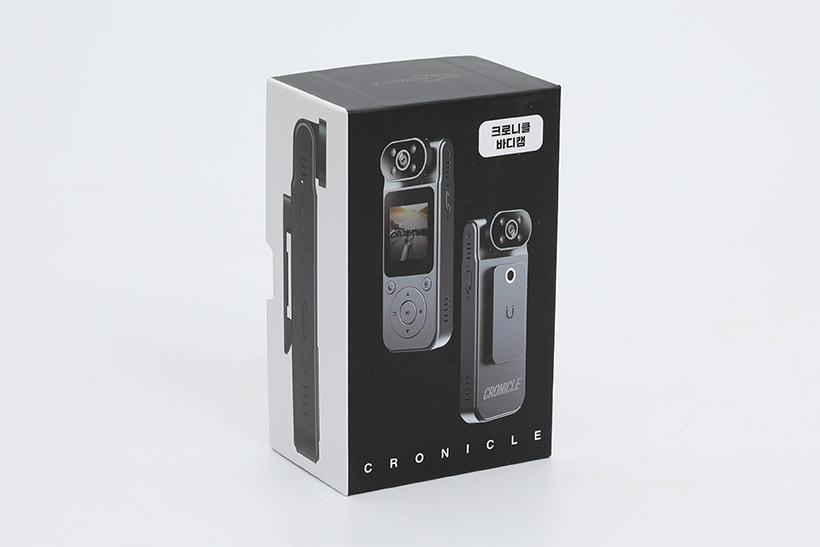 크로니클 초간편 버튼 디스플레이 바디캠은 자그마한 박스에 담겨있는데, 박스 앞면과 옆면에 제품의 자세한 컬러 이미지가 인쇄되어 있어서 개봉 전에도 디자인을 미리 확인할 수 있다.