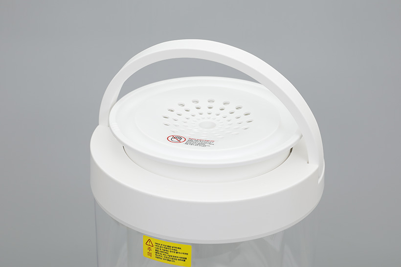 본체 윗면에 있는 뚜껑에는 많은 수의 분무구가 뚫려 있어서 여기를 통해 수분이 위로 배출되는 구조이다.