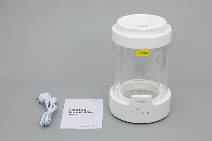 박스 안에는 구성품으로 아이리버 가열식 가습기 JS03A 본체와 전원 코드, 그리고 사용 설명서가 담겨있다.