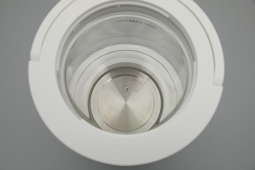 본체는 원통형으로 되어 있으며, 본체 가운데에는 투명한 수조가 위치해 있다. 수조는 높은 온도를 버티고 세균의 번식을 방지하는 붕규산 유리 재질 내부 수조와 충격에 강한 PC쉘의 외부 수조의 2중 구조로 되어 있어서 수조를 만졌을 때 화상 위험을 줄여주고 소음도 줄여주는 역할을 한다.